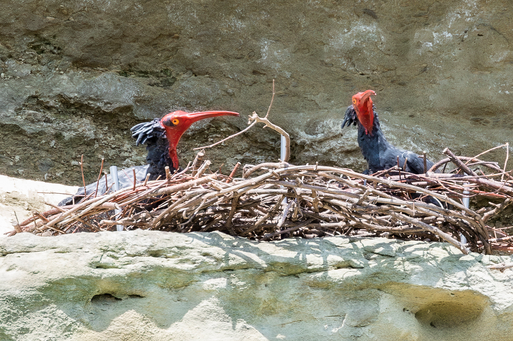 Dazu animiert haben sie zwei Waldrapp-Attrappen, die vom Naturhistorischen Museum Wien (NHM) mittels 3D-Drucker hergestellt wurden. „Bisher haben die Ibisvögel in einer nahegelegenen künstlichen Brutwand genistet. Dies war ein notwendiger Zwischenschritt, um den ursprünglich aus Tiergärten stammenden Vögeln zu zeigen, dass sie in der Region brüten können. Ziel war es aber immer, dass die Waldrappe an ihre natürlichen Brutplätze zurückkehren. Damit ist der letzte wichtige Meilenstein geglückt,“ freut sich Schönbrunns Tiergartendirektor Stephan Hering-Hagenbeck. Die Waldrappe am Bodensee wurden im Rahmen eines ersten EU LIFE-Projekts wiederangesiedelt. Der Tiergarten Schönbrunn leitet seit 2022 ein zweites LIFE-Projekt, das den erfolgreichen Schutz und die Wiederansiedlung dieser seltenen Vögel, die im 17. Jahrhundert in Europa ausgerottet wurden, fortsetzt.